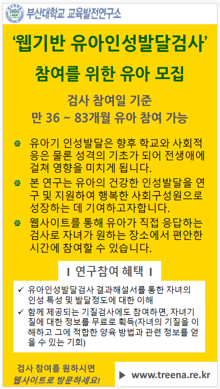 [양육정보] [부산대학교 교육발전연구소] '유아인성발달검사' 실시 건