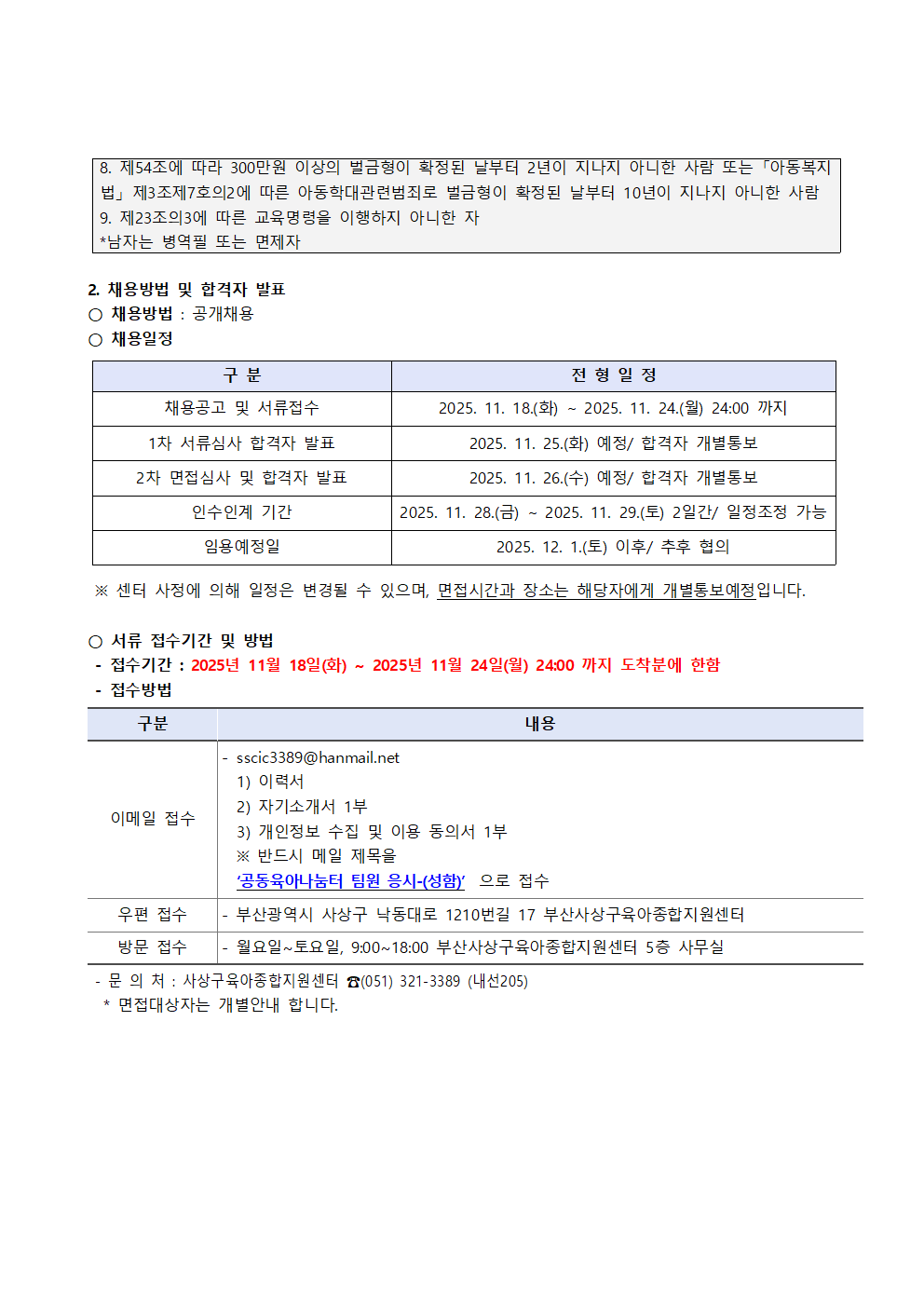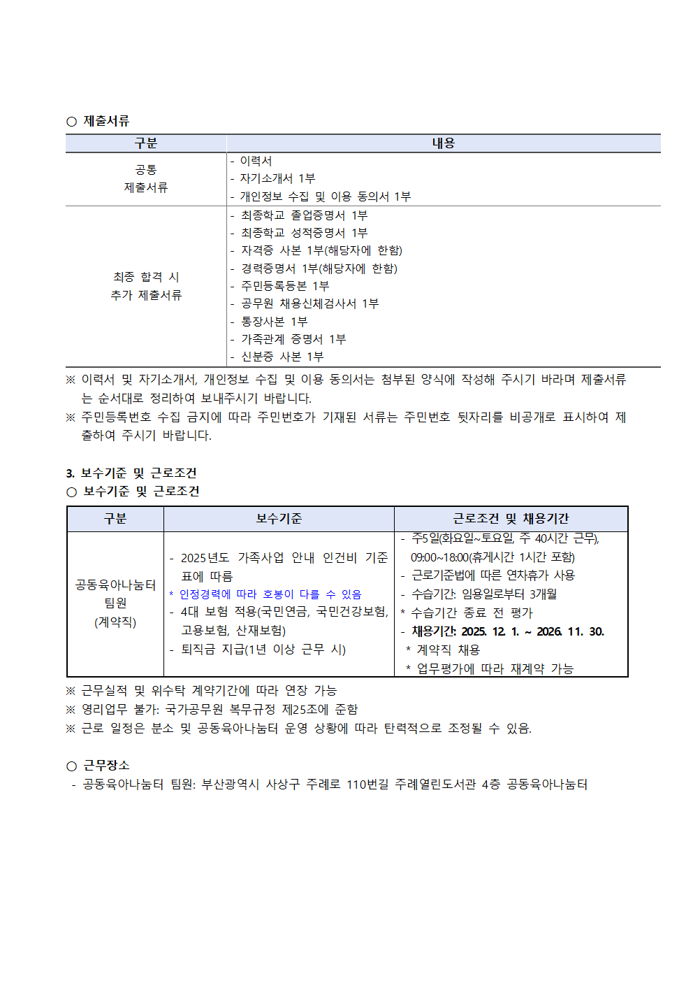 [연제구육아종합지원센터] 2025년 시간제대체교사 관리자 공개채용 공고