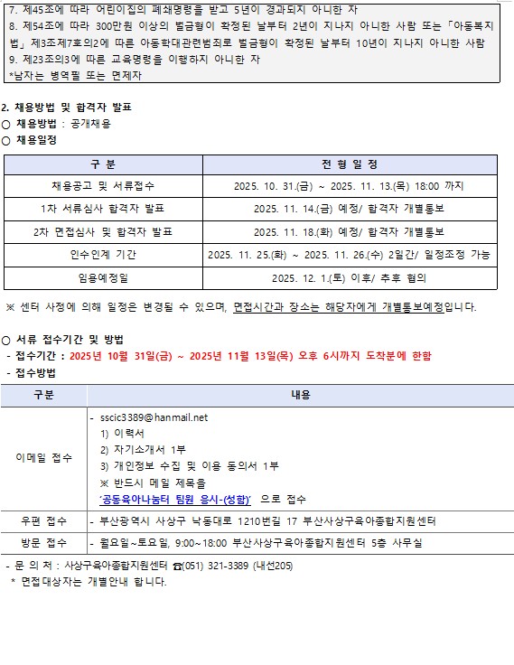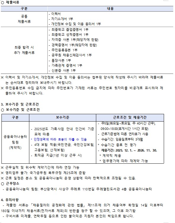 [부산광역시육아종합지원센터] 2025년 대체교사 인력 채용 공고