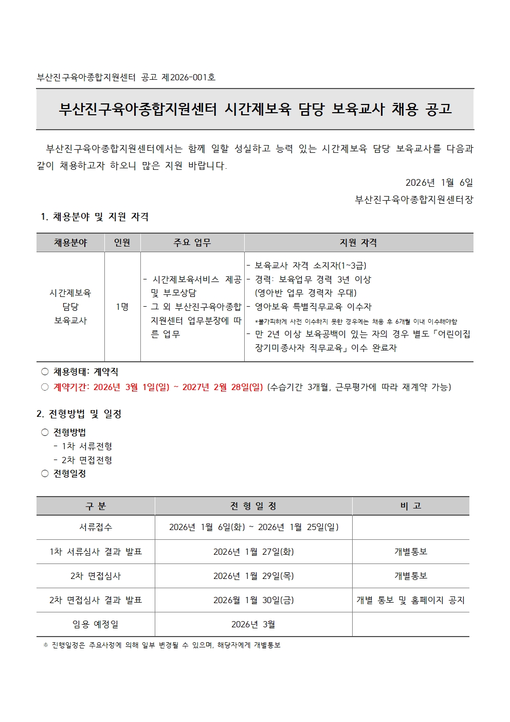 붙임 1. 부산진구육아종합지원센터 시간제보육 담당 보육교사 채용 공고.hwp