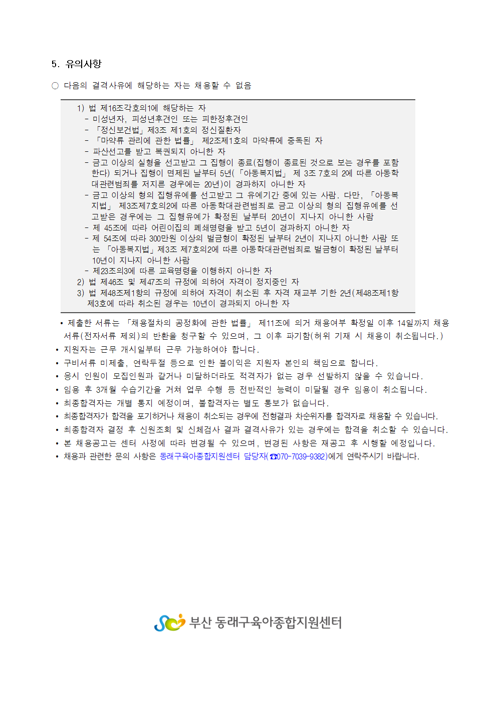 [부산동래구육아종합지원센터] 직원 채용 공고
