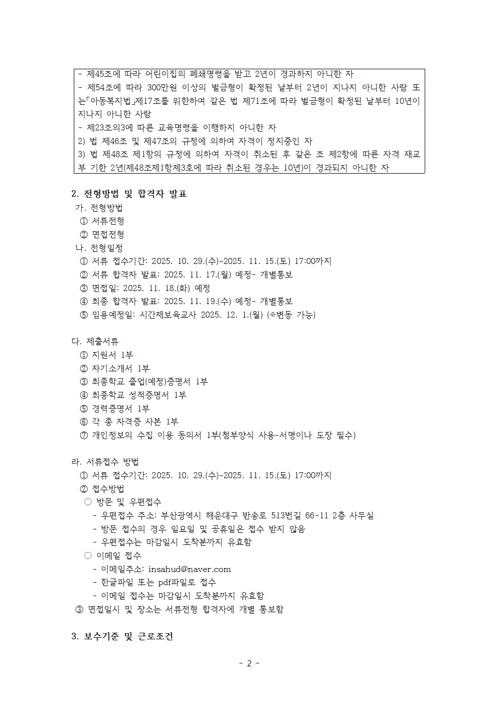 [부산동래구육아종합지원센터] 직원 채용 공고