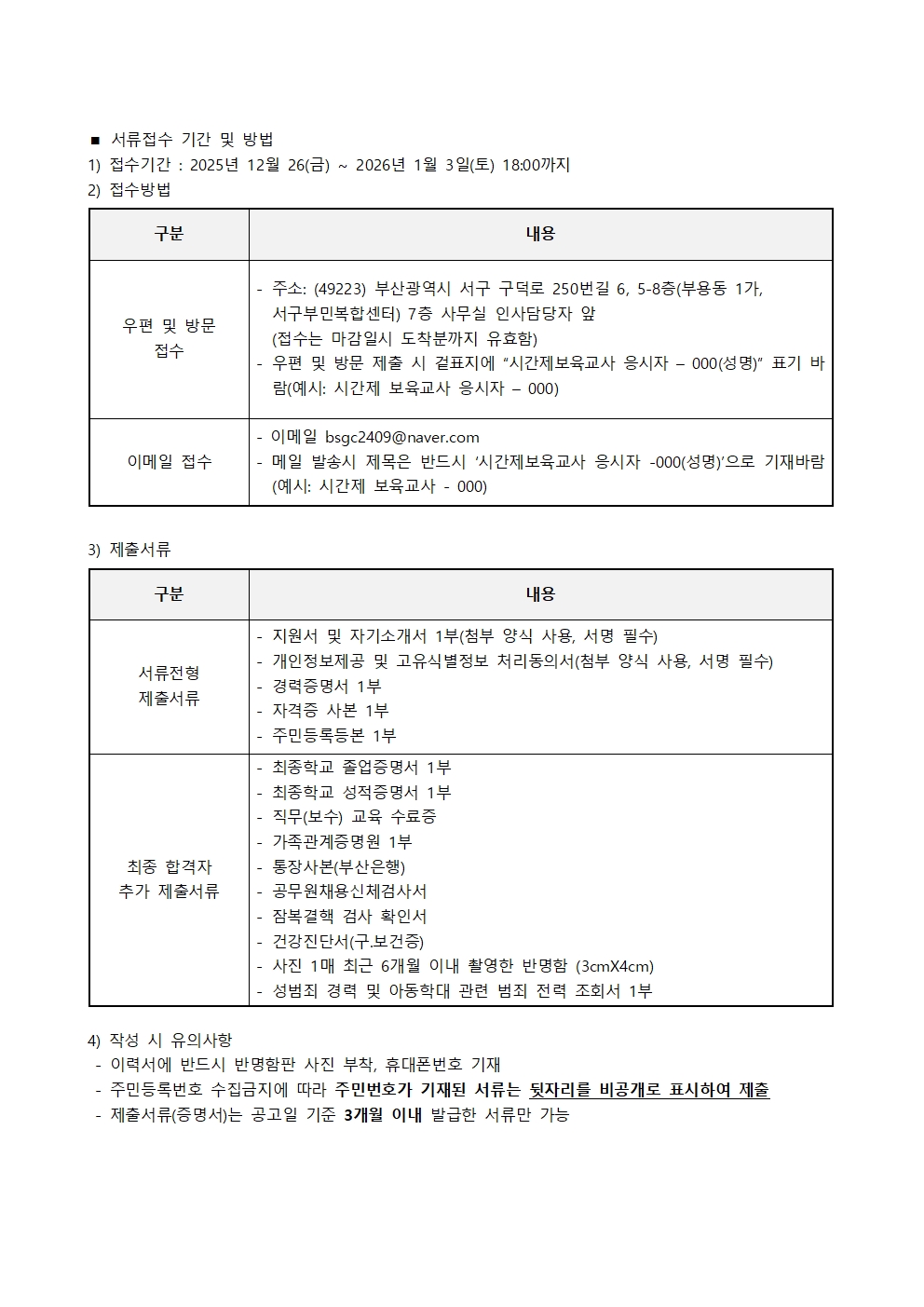 붙임1.부산서구육아종합지원센터 시간제보육교사 채용 재공고.hwp