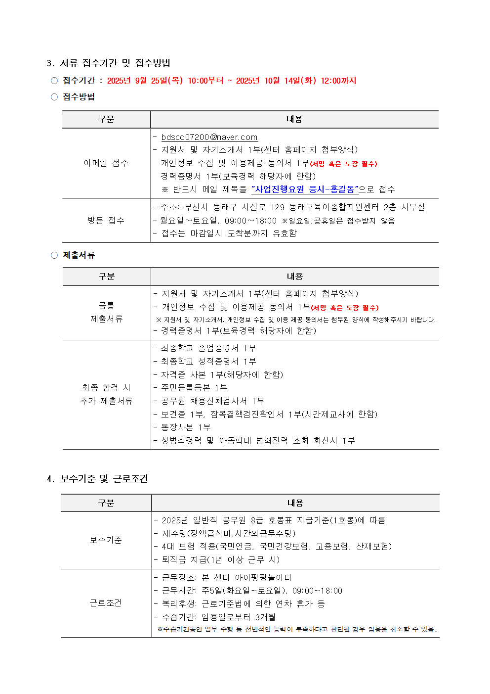 [동래구육아종합지원센터] 직원 채용 공고