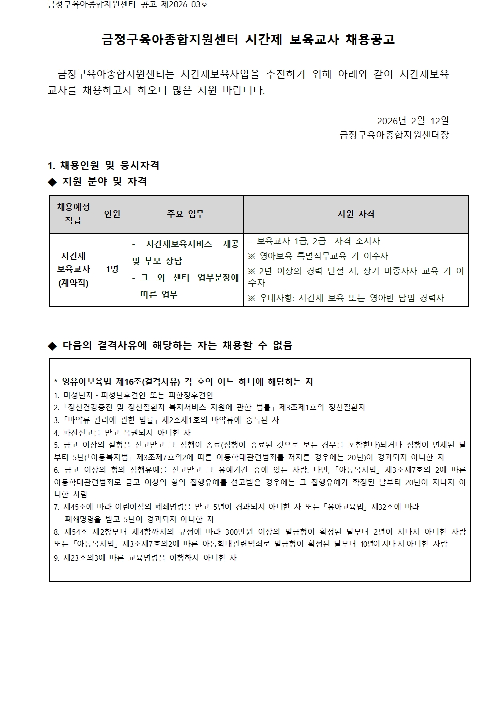 금정육종지26-017. 붙임1) 시간제보육교사 채용 공고문.hwp